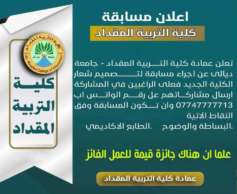 إعلان هام: كلية التربية المقداد تدعو للمشاركة في تصميم شعارها الجديد