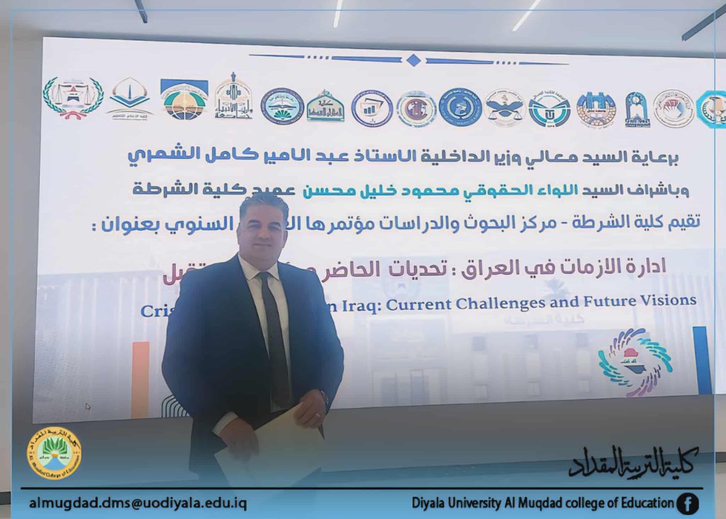 شارك الأستاذ المساعد الدكتور ياسر محمود وهيب وم. علي جعار لفتة، التدريسيان في كلية التربية المقداد، في المؤتمر العلمي السنوي الثاني الذي أقامه مركز البحوث والدراسات في كلية الشرطة تحت شعار “إدارة الأزمات في العراق – تحديات الحاضر ورؤى المستقبل”.