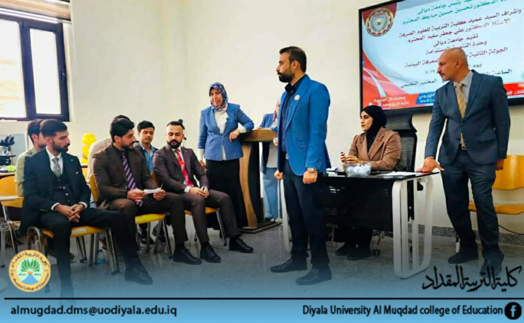 برعاية السيد رئيس جامعة ديالى الأستاذ الدكتور تحسين حسين مبارك المحترم، تواصل وحدة التنمية المستدامة في جامعة ديالى مسابقتها العلمية تحت عنوان ( المعرفة البيئية ) ضمن المستوى الثاني ، اليوم الاحد الموافق 19 نيسان 2026 بمشاركة كليات الجامعة ، في قاعة كلية التربية للعلوم الصرفة / قسم علوم الحياة .