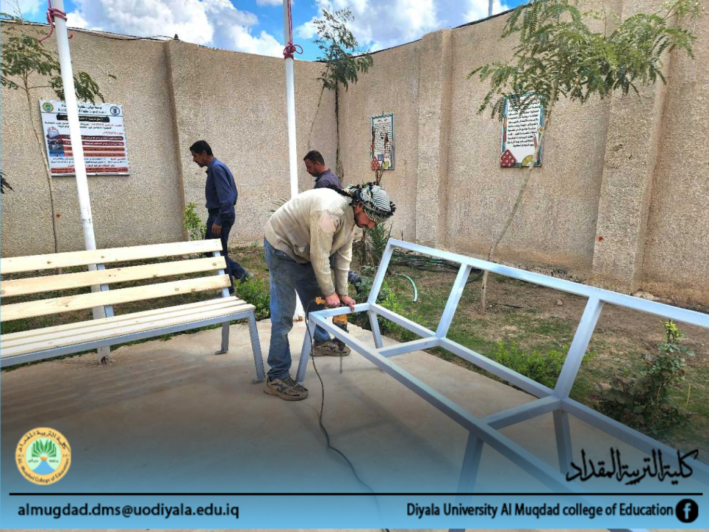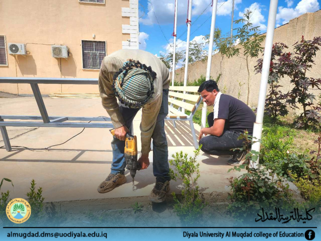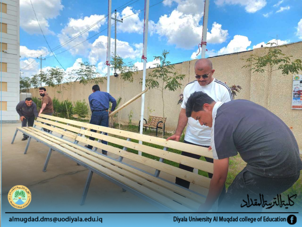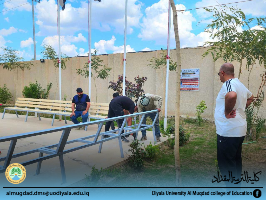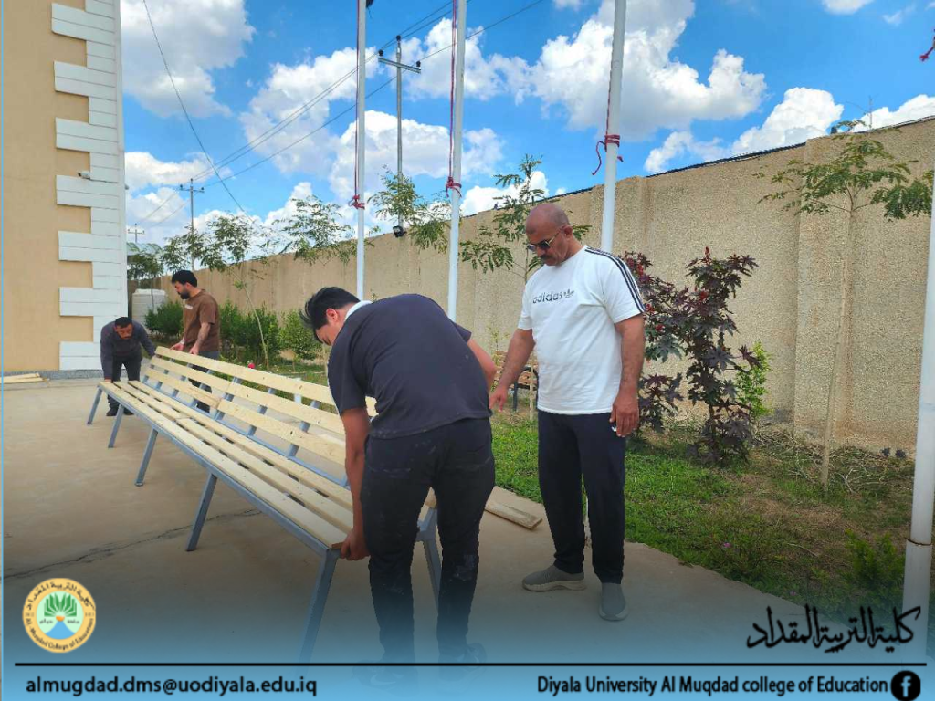 حملة تطوعية مشتركة بين كلية التربية المقداد وطلبتها لنصب مقاعد استراحة