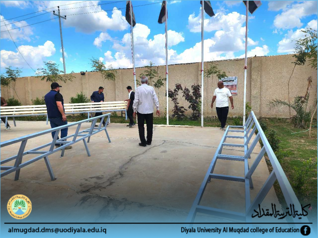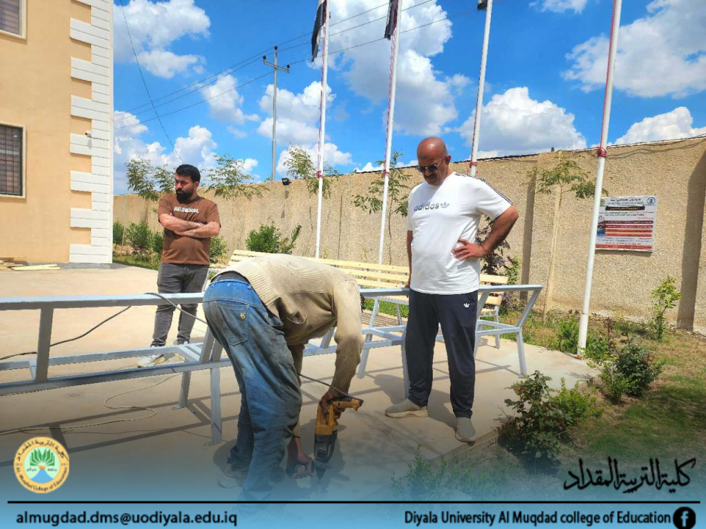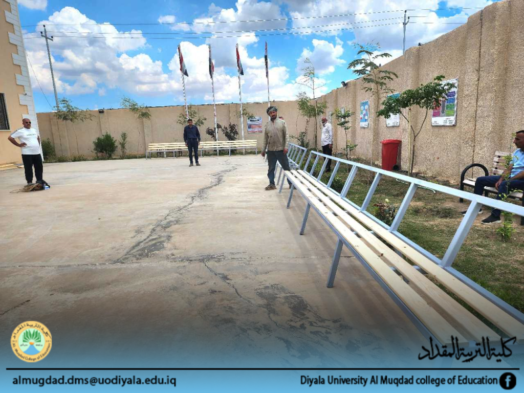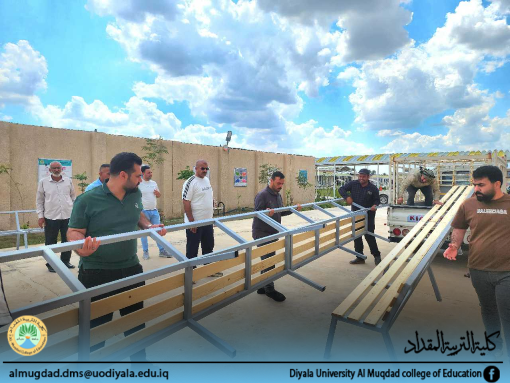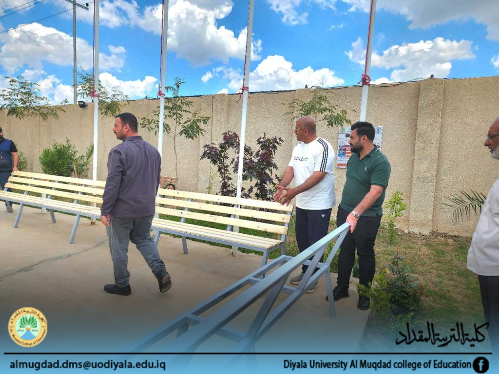 حملة تطوعية مشتركة بين كلية التربية المقداد وطلبتها لنصب مقاعد استراحة