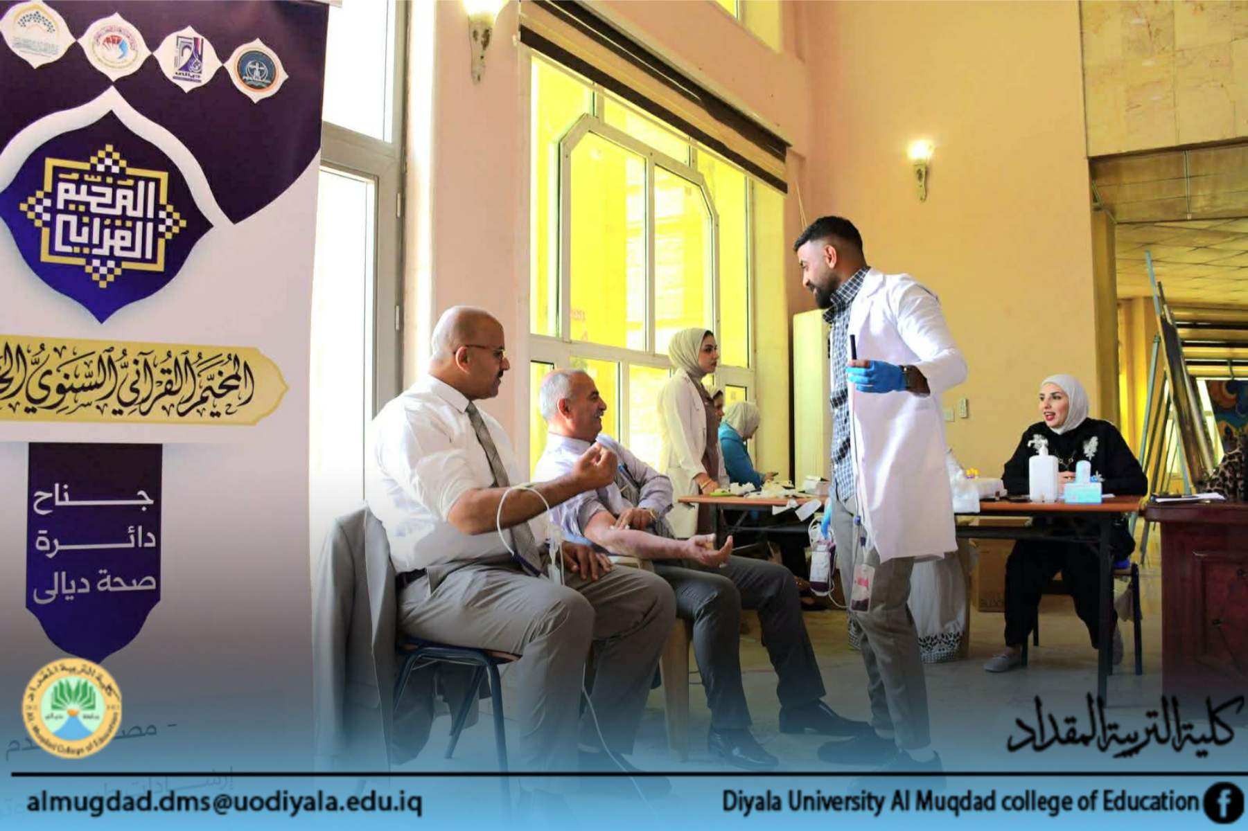 ضمن فعاليات المخيم القرآني الخامس تساهم كلية التربية المقداد بالتبرع بالدم