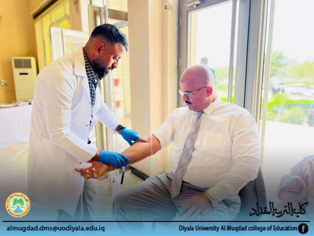 وفي هذا السياق، بادر السيد عميد كلية التربية المقداد الأستاذ الدكتور أياد هاشم محمد المحترم اول المتبرعين بالدم، في خطوة تجسد روح المسؤولية المجتمعية وتعزز ثقافة العطاء والعمل الإنساني.