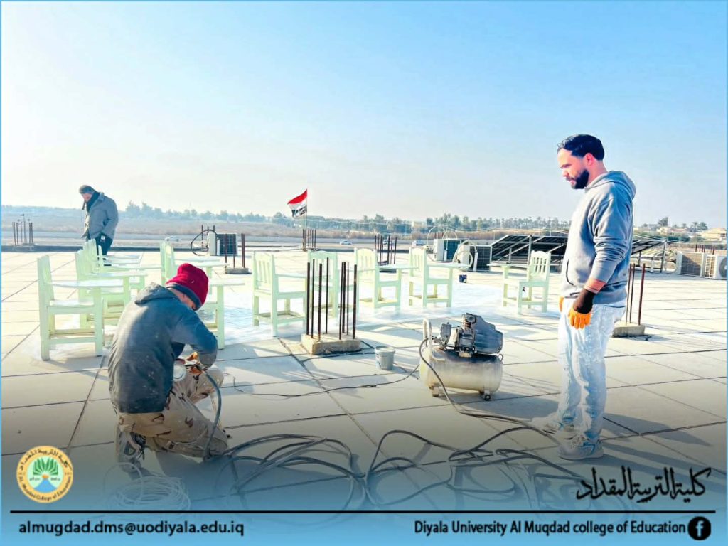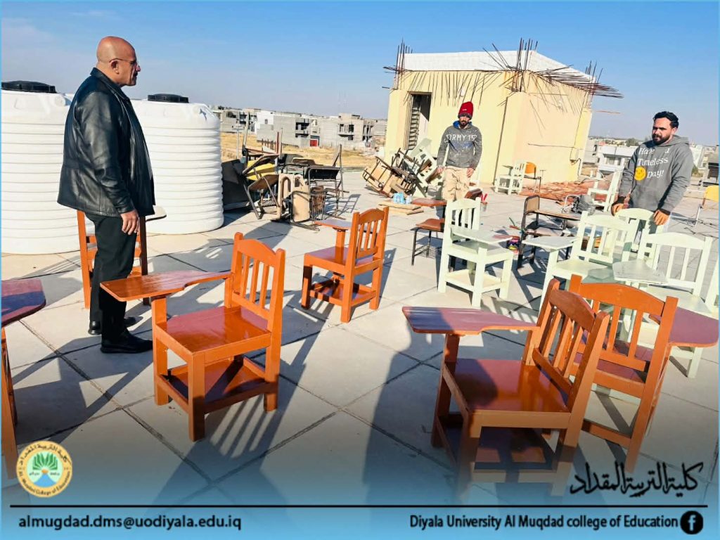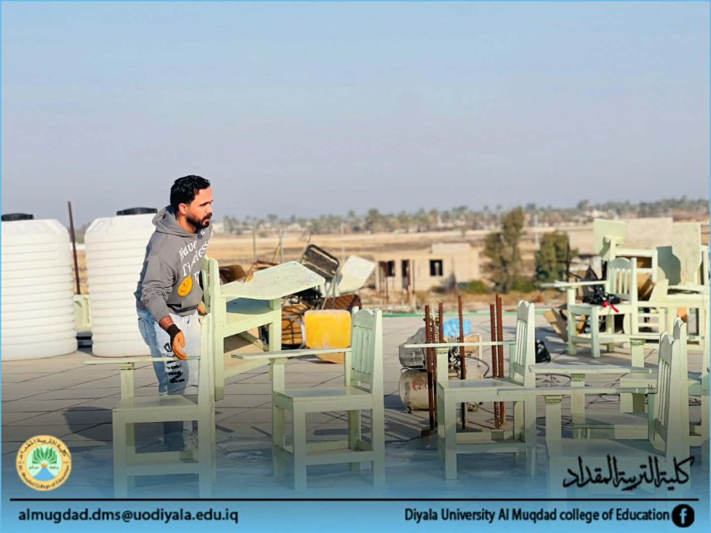 برعاية وأشراف السيد عميد كلية التربية المقداد الاستاذ الدكتور اياد هاشم محمد المحترم نفذت شعبة النشاطات الطلابية بالتعاون مع طلبة قسم الارشاد النفسي والتوجيه التربوي / للدراسة المسائية بتاريخ 25 كانون الثاني 2026 الموافق يوم الاحد مبادرة تطوعية لإعادة تأهيل وصيانة وصبغ المقاعد الدراسية بمشاركة عدد من طلبة قسم الارشاد النفسي والتوجيه التربوي / المرحلة الثانية – الدراسة المسائية وذلك بهدف الارتقاء بالبيئة التعليمية والحفاظ على الممتلكات العامة.