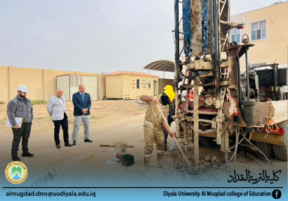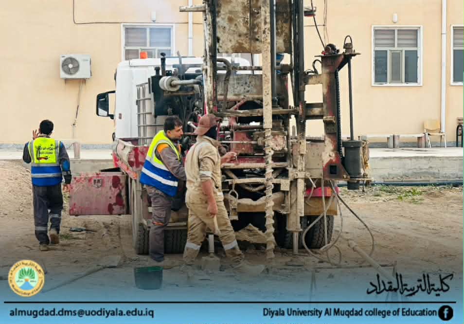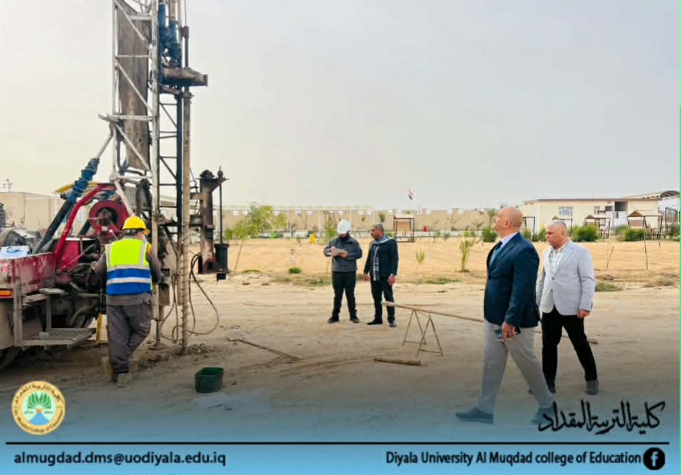 لغرض توسعة بنايات الكلية، أُجريت أعمال فحص وتحريات هندسية في موقع كلية التربية المقداد، نفذتها آليات قسم الشؤون الهندسية في الجامعة، بهدف دراسة طبقات التربة والتأكد من مدى تحمّل الأرض، تمهيدًا للشروع بمشاريع التوسعة المستقبلية، وبما ينسجم مع خطط تطوير البنى التحتية للكلية.
