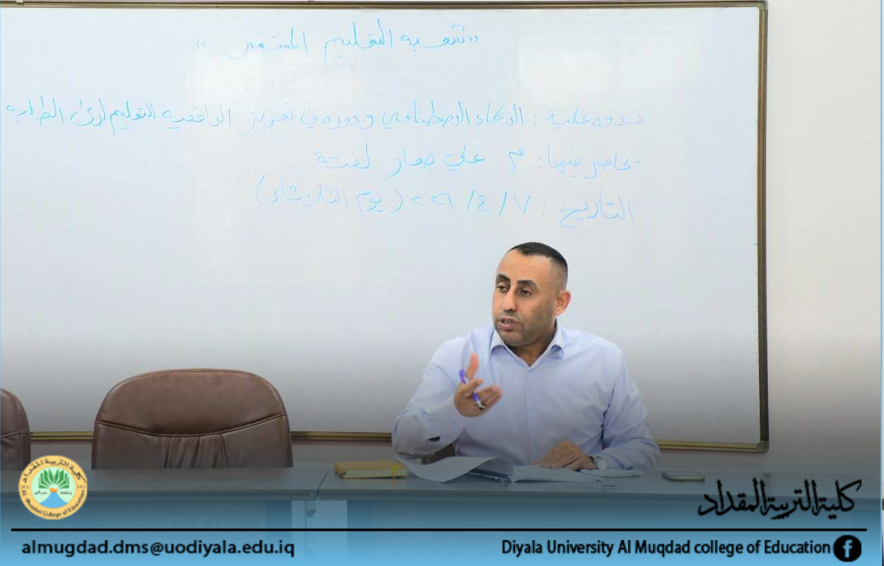 برعاية واشراف السيد عميد كلية التربية المقداد الاستاذ الدكتور أياد هاشم محمد المحترم ، أقامت شعبة التعليم المستمر في الكلية ندوة بعنوان ( الذكاء الاصطناعي ودوره في تعزيز الدافعية للتعليم لدى الطلبة)، حاضر فيها : م. علي جعار لفتة، وعلى قاعة المرحوم الدكتور عبد الستار الأسدي .