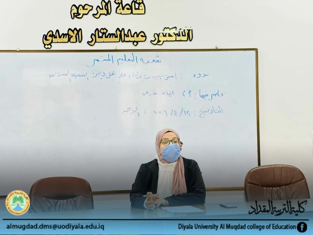 برعاية واشراف السيد عميد كلية التربية المقداد الاستاذ الدكتور أياد هاشم محمد المحترم ، أقامت شعبة التعليم المستمر في الكلية ندوة بعنوان(استرتيجيات القضاء على الفقر في ضوء التنمية المستدامة) حاضر فيها : م.م. ايمان غازي عطية، وعلى قاعة المرحوم الدكتور عبد الستار الأسدي .