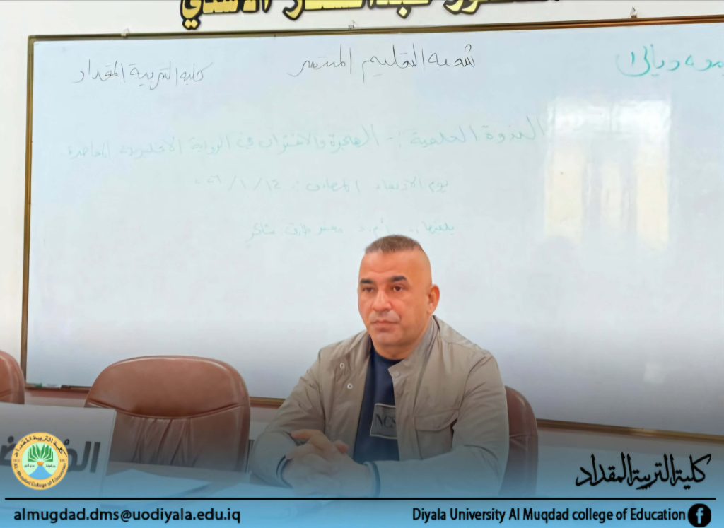 بأشراف السيد عميد كلية التربية المقداد الاستاذ الدكتور أياد هاشم محمد المحترم أقامت شعبة التعليم المستمر في كليتنا ندوة توعوية بعنوان (الهجرة والاغتراب في رواية إنكليزية معاصرة)، ألقاها الاستاذ المساعد الدكتور معتز طارق شاكر.