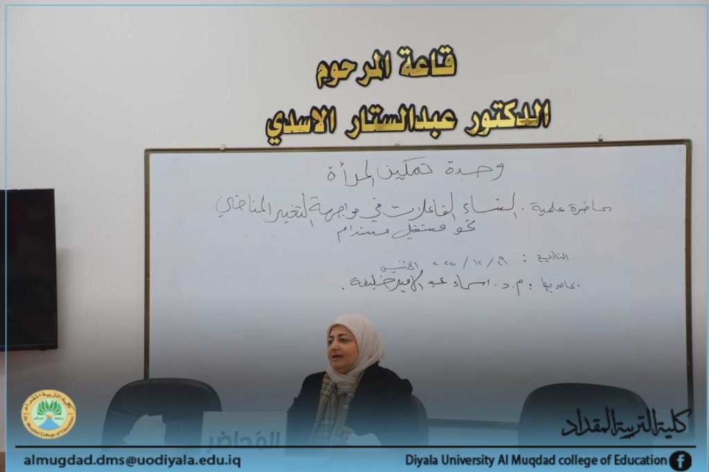 بإشراف السيد عميد كلية التربية المقداد ، الأستاذ الدكتور إياد هاشم محمد ، أقامت وحدة شؤون المرأة في الكلية محاضرة بعنوان: (النساء فاعلات في مواجهة التغير المناخي نحو مستقبل مستدام).