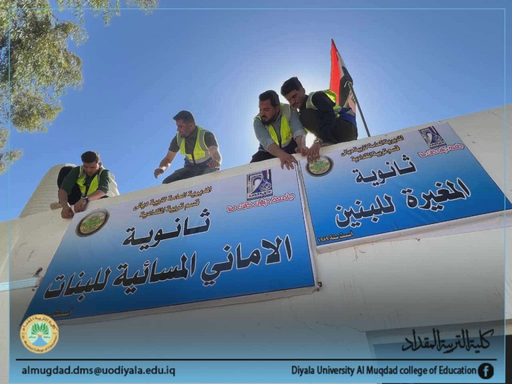 نفذت شعبة النشاطات الطلابية في كلية التربية المقداد ، حملة تطوعية لتجديد اللافتات التعريفية لعدد من المدارس في قضاء المقدادية.
