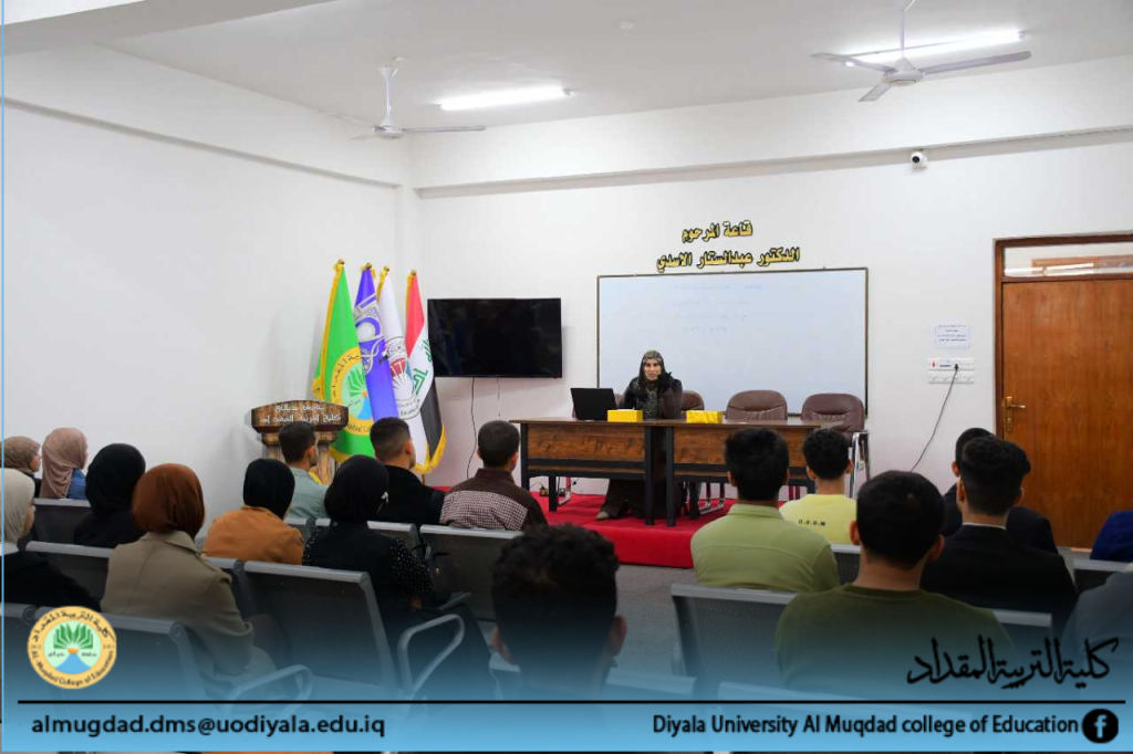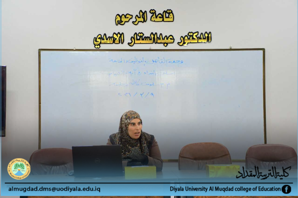 برعاية واشراف السيد عميد كلية التربية المقداد الاستاذ الدكتور أياد هاشم محمد ، أقامت وحدة التأهيل والتوظيف والمتابعة في الكلية ضمن فعاليات شهر رمضان المبارك ندوة علمية بعنوان ( أسلوب النداء في آية الصيام ) ، اليوم الاثنين الموافق 9 آذار 2026 ، حاضر فيها : المدرس المساعد سلوى كاظم خليفة ، وعلى قاعة المرحوم الدكتور عبد الستار الأسدي .