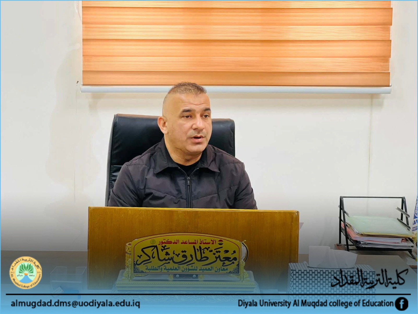 عقد السيد معاون العميد للشؤون العلمية، الأستاذ المساعد الدكتور معتز طارق شاكر ، يوم الاثنين الموافق 8/ 12/ 2025 ، اجتماعا مع ممثلي طلبة الأقسام العلمية في الكلية.