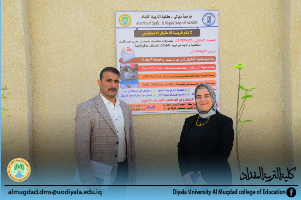 نشر الوعي الرقمي وتعزيز الثقافة الأمنية أطلقت كلية التربية المقداد حملة توعوية ببوستر إرشادي تحت شعار “ لا تقع فريسة الاحتيال الإلكتروني ”