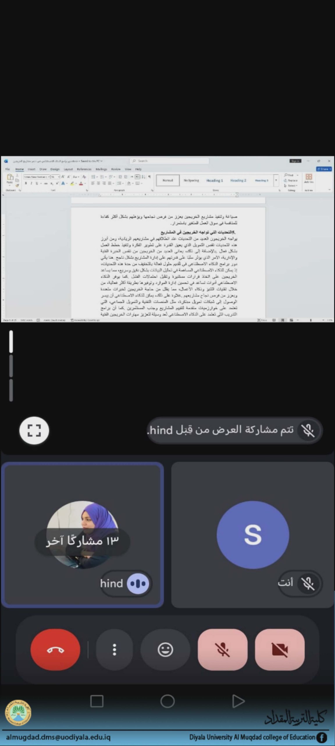 بأشراف السيد عميد كلية التربية المقداد الاستاذ الدكتور أياد هاشم محمد المحترم نظّمت وحدة التأهيل والتوظيف والمتابعة حلقة نقاشية تدريبية بعنوان (مهارات العرض والتقديم والإلقاء) ،ألقاها المدرس الدكتور سارة قدوري لطيف استهدفت الحلقة فئة الطلبة الخريجين و ذلك لدعم و …